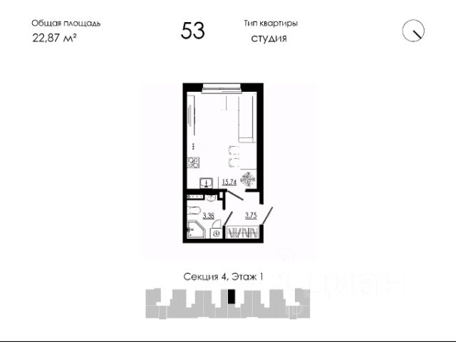 Продаётся студия в строящемся доме (Дом 19), срок сдачи: III-кв. 2026, общей площадью 22.87 кв.м., на 1 этаже. Новый жилой дом от застройщика "НК Развитие" расположен по адресу: Форносовское г.п, г.п.Форносово, ул.Круговая, уч. 19.