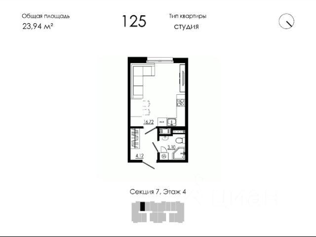 Продаётся студия в строящемся доме (Дом 19), срок сдачи: III-кв. 2026, общей площадью 23.94 кв.м., на 4 этаже. Новый жилой дом от застройщика "НК Развитие" расположен по адресу: Форносовское г.п, г.п.Форносово, ул.Круговая, уч. 19.