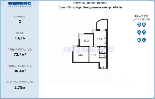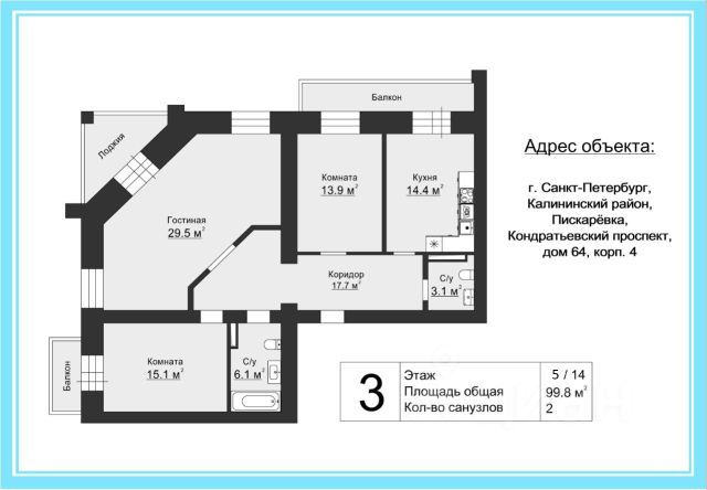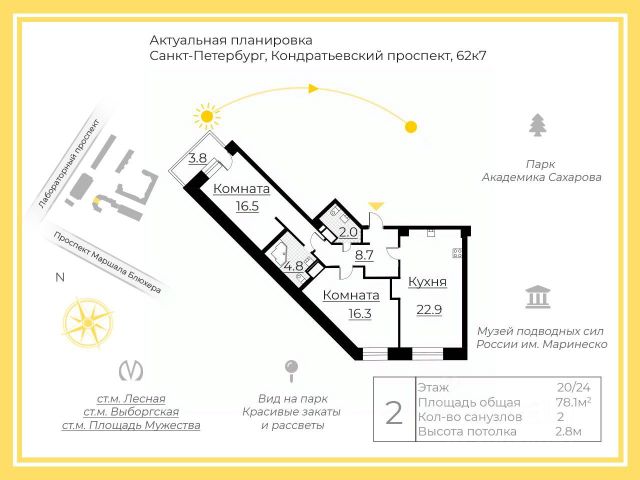 Вы смотрите именно на такую — 2-комнатную квартиру 67,6 м² в ЖК "Полюстрово Парк".
