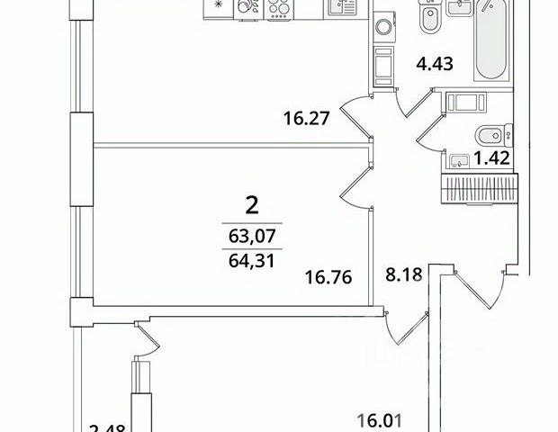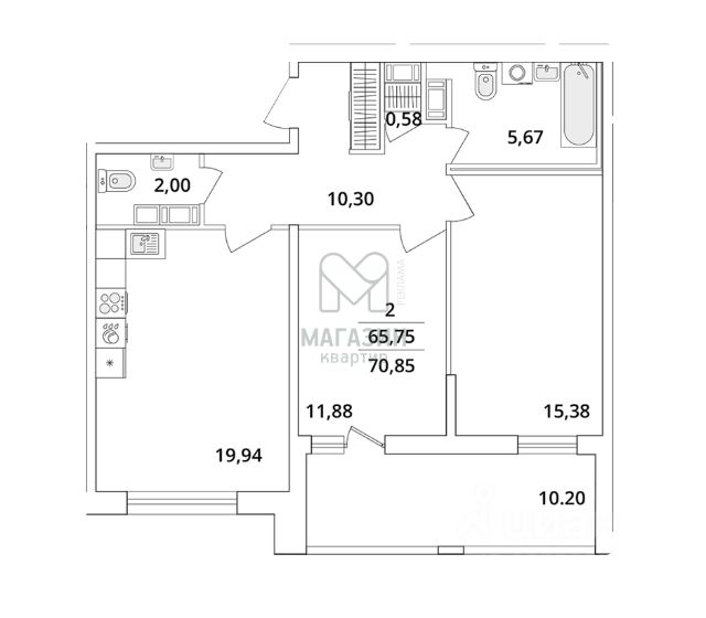 2. Семейные ужины и готовка — с комфортом. Кухня 19, 94 м²: встанет большой стол/остров, техника встраивается без зазоров и выступов