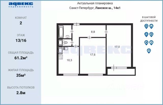 ID: 1916975 Видовая 2-х комнатная квартира с изолированными комнатами (18 +17кв.м) около станции метро Черная речка. Без перепланировок. Вид на Санкт-Петербург, исторические и высотные доминанты, панорама города! Видны салюты. Нет окон в окна. Застекленный балкон. Раздельный санузел. Дом "комфорт-класса" от ЛенСпецСМУ, победитель городского архитектурного конкурса! Видеонаблюдение, консьерж в парадной, круглосуточная охрана и диспетчерская. Благоустроенная территория. Вход в парадную и к лифтам без ступенек (доступная среда). В доме ПОДЗЕМНЫЙ ПАРКИНГ, минимаркет, булочная, службы доставки интернет-магазинов, салоны красоты и т.п. Развитая социальная инфраструктура, множество магазинов, школ, гимназий, дет.садов. Рядом парк Дуэли Пушкина, Удельный парк, Каменный и Крестовский о-ва, ЦПКиО. Удобная транспортная доступность. Центр города и Курортное направление. До метро 12-15 минут пешком. Отличное месторасположение! Один взрослый собственник. В собственности с начала постройки дома. Идеальные документы на объект. Без обременений, материнский капитал не использовался. Показы по предварительной договоренности. Звоните! Купить квартиру элитные на шоссе Ланское в Санкт-Петербурге.