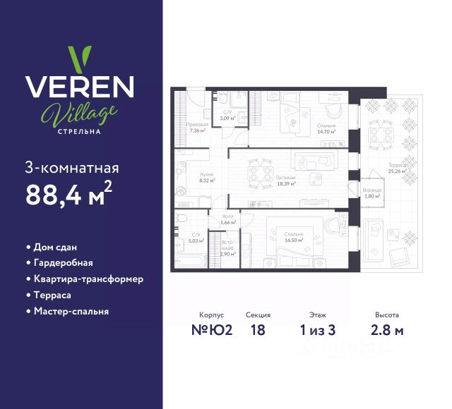 Продаётся 4-комнатная квартира 235, общей площадью 114.61 кв.м., на 12. Дом комфорт-класса, 12 этажей, в окружении леса и малоэтажной застройки. Проект с умным домом. Передача квартир в феврале 2025г. РАСПОЛОЖЕНИЕ И БЛАГОУСТРОЙСТВО Расположение ЖК "ЛесART" порадует любителей чистого воздуха — рядом находятся лесопитомник и Шунгеровский заказник. Особенность комплекса это его ART дворы, которые оформлены по мотивам произведений Василия Кандинского, Пита Мондриана и Пабло Пикассо. Дворы закрыты от машин, что обеспечивает безопасность детей и взрослых. Для семей с детьми особенно удобно наличие детского сада и школы прямо во дворе комплекса. На первом этаже расположены магазины, маркетплейсы, кофейни и всё что необходимо для повседневной жизни. Холлы - это продуманные пространства с колясочными, сквозными проходами и приятной музыкой в лифтах. СИСТЕМА УМНОГО ДОМА В КАЖДОЙ КВАРТИРЕ - Комфорт. Управление освещением, мультимедиа и климат-контролем. - Безопасность. Видеонаблюдение и мониторинг систем безопасности. - Экономия. Контроль систем и оптимизация энергопотребления. - Удобство. Управление с помощью мобильного телефона. ГК "ЕДИНО" Входит в тройку компаний-лидеров региона по потребительским качествам жилых комплексов, объемам ввода жилья и объемам текущего строительства. В цифрах: - 23 года на рынке - Более 50 построенных домов - 60 000+ счастливых обладателей квартир ПРЕИМУЩЕСТВА ПОКУПКИ В ЖК "ЛЕСART": - Сниженная ставка по семейной ипотеке от 5,5%; - Рассрочка без переплаты; - Обмен старой квартиры на новую без комиссии; - Возможность использовать материнский капитал; ЗАПИСЫВАЙТЕ НА ПРОСМОТР! Мы ждем Вас в нашем уютном шоуруме. Вы увидите отделку, дизайнерские решения и познакомитесь со сценариями Умного дома! Такси до офиса продаж и обратно БЕСПЛАТНО! Элитное жилье - квартира рядом с метро Проспект Ветеранов.