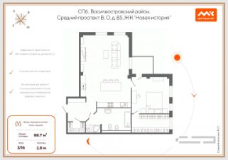 Предлагаем приобрести просторную двухкомнатную квартиру в двух шагах от станции метро Василеостровская (в доме 35 на Среднем проспекте Васильевского острова).
