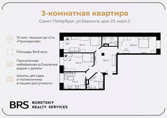 Вашему вниманию предлагается пентхаус общей площадью 168 кв. м (с учетом лоджии в 34,7 кв. м), расположенный в самом центре Васильевского острова. Этот объект идеально подойдет для большой семьи, ценящей тишину вблизи центра города, пространство и перспективу видов из окна. Три большие изолированные спальни - позволят реализовать все самые смелые дизайнерские решения. А большая прихожая с местами для хранения, постирочная и 2 санузла гарантируют комфортное проживание всех членов семьи. Сложно переоценить всю многогранность и незаурядность инфраструктуры Васильевского острова. Прямо в доме расположены частный детский сад и развлекательный детский центр. Магазины, спорт-клубы, торговые и развлекательные центры, детские сады, школы и университеты всё в 5 минутах езды на машине. Отличная транспортная развязка. Удобный выезд на ЗСД. Остановки транспорта и метрополитена всё в пешей доступности. Один собственник. Без обременений. Прямая продажа. Показы в любое удобное время. Купить квартиру - элитное жильё на улице Беринга в Санкт-Петербурге.