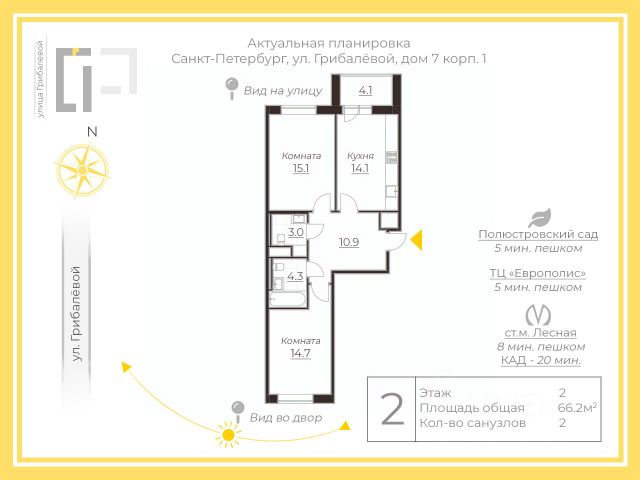 Арт. 112495426 Квартира с ремонтом в современном жилом комплексе рядом с метро Лесная! 2 спальни,2 санузла, кухня-гостиная с лоджией. В квартире выполнен качественный ремонт, есть вся необходимая мебель и техника, можно сразу заехать и жить не тратя время на ремонт. В комплексе закрытый, большой, зелёный двор, камеры видеонаблюдения по периметру, безопасная однородная среда, детские площадки, беседки. Высажены взрослые лиственные и хвойные деревья, цветущие кустарники, организованы разнообразные тематические площадки, что делает прогулку во дворе приятной и полезной как для детей так и для взрослых. На территории ЖК есть детский сад, развивающие кружки, а также магазин, булочные, кофейни, ресторан, химчистка, пункты выдачи ВБ, Озон, Сдэк. Комплекс расположен в окружении зелени в тихом районе города рядом с парками и садами, где для спокойной семейной жизни продумана каждая деталь. 6 жилых корпусов комфорт-класса, окруженные природой при этом в непосредственной близости от исторического центра и Петроградской стороны: в пяти минутах пешком от станции метро "Лесная". В 1 минуте ходьбы спортивный комплекс Шанс арена с ледовым катком, студия пилатеса, фитнес клуб, ТРК Европолис. Детские сады и школы также в пешей доступности. В доме есть подземный паркинг, кладовые для хранения вещей. Есть парковочное место в аренду с возможностью выкупа, а также кладовка. Один собственник, обременений нет, прямая продажа. Звоните отвечу на все ваши вопросы. Ждём вас на просмотры.. Продам квартиру элитные на улице Грибалевой в Санкт-Петербурге.