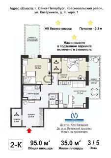 Продается просторная двухкомнатная квартира с большой кухней гостиной в современном ЖК Линкор. Квартира расположена в 4-х этажной секции, всего 3 квартиры на этаже. Дворовая территория с детской площадкой расположена на пандусе и удалена от проезжей части. Очень тихо и уютно. Площадь квартиры 90,1 м, кухня гостиная 40,2 м, комнаты 15,4 м, и 13,6 м, просторная лоджия 5,1 м, ванная 6,7 м, туалет 3 м. Квартира двухсторонняя, кухня гостиная и комната 13,6 м выходят во двор на запад, комната 15,4 м выходит на тихую улицу на восток. В квартире выполнен очень качественный дорогостоящий ремонт, при выполнении работ использовались европейские материалы премиум класса. Вся мебель и техника остаются, все в отличном состоянии, можно заехать и жить. Балтийская Жемчужина - один из лучших микрорайонов города. Детский сад и школа во дворе, ТРЦ Жемчужная плаза - в 3 минутах пешком, Южно-Приморский парк - в 5 минутах, рядом набережная Финского залива, Стрельна и Петергоф. Вместе с квартирой можем предложить приобрести паковочное место в подземном паркинге, место очень удобное совсем рядом со входом. По сделке: один собственник, собственность более 8 лет, прямая продажа, без обременений, подходит под любую ипотеку, полная стоимость в договоре. Приглашаем Вас на просмотр! Купить квартиру - элитное жильё на улице Катерников в Санкт-Петербурге.