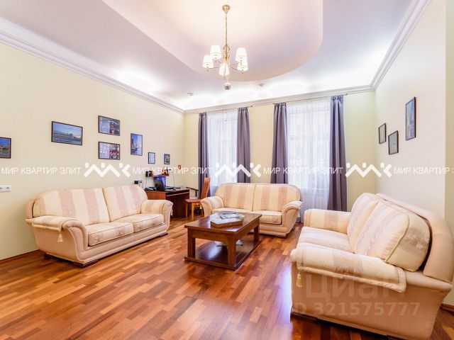 Уникальное предложение квартиры по местоположению, дому, отделке и интерьеру. Квартира 259,2 кв.м., пятикомнатная, большая кухня-столовая, три санузла, кладовые, два входа с разных парадных. Готовая к проживанию, не требуется косметический ремонт. Квартира в таком исключительном месте и неповторимом виде будет семейной ценностью и реликвией, соответствует духу Санкт-Петербурга. Находится в самом центре исторических и культурных мест города, расположение дома на набережной реки Мойки усиливает ее ценность. Квартира видовая, из всех окон открывается замечательный вид на реку Мойку и набережную, на памятник Николаю I и площадь Исаакиевского собора, легендарный отель Астория, Синий и Красный мосты. В минутах ходьбы Исаакиевский собор, Медный всадник, отель Англетер, Законодательное собрание Санкт-Петербурга, Зимний Дворец, Казанский собор, Спас на Крови, Государственный Эрмитаж, Новая Голландия, академические театры Санкт-Петербурга. Квартира располагается в бывшем доходном доме Корпуса К. Б., построенном по проекту известного архитектора Гешвенда А.Р. Класс проекта - элитный дом, архитектура - эклектика. Собственником квартиры проведен капитальный ремонт, редкий случай, когда новые бетонные перекрытия сделаны между соседними верхними и нижними этажами, заменены все инженерные коммуникации, произведена шумо-изоляция помещений. Городом проведен капитальный ремонт всего дома. Отделка и интерьер выполнены собственником квартиры в историческом санкт-петербургском дворцовом стиле, профессионально и качественно, каждая деталь продумана до мелочей. Роспись потолков, стен и проемов создавалась художниками Академии художеств им. И. Репина и Российской Академию Живописи, Ваяния и Зодчества Ильи Глазунова. Дубовый паркет, двери, оконные рамы и элементы интерьера изготовлены на заказ в санкт-петербургских мастерских. Отдельные элементы стен, проемов, эркеров и подоконники отделаны натуральным камнем оникс. Восстановленный действующий камин с аутентичными изразцами. Квартира обустроена предметами интерьера, соответствующие элементам отделки.