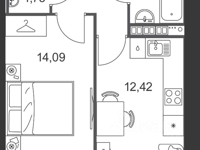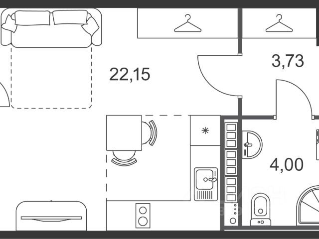 Общая площадь квартиры 24.8м, площадь кухни. 7.8 м, дом без коммуникаций, квартплата 800 рублей. Помещение с отдельным входом и участком земли (огорожена).