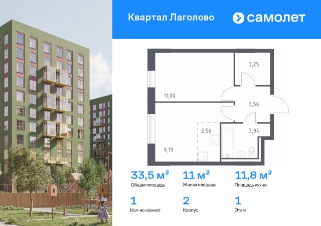 Строим кварталы для жизни с заботой о будущем. Предлагается 1-комнатная квартира комфорт-класса 32,73 кв.м в корпусе 1 на 1 этаже, в ЖК "Квартал Лаголово" Квартира с предчистовой отделкой. Доступность дополнительных опций уточняйте у застройщика. Приобрести квартиру возможно по специальным акциям от застройщика, с текущими условиями акций можно ознакомиться в блоке "Акций". Цена динамическая и может отличаться, уточняйте актуальность у застройщика. "Квартал Лаголово" — жилой комплекс в Ломоносовском районе Ленинградской области. До сердца Петербурга — час на машине, до станции метро "Проспект Ветеранов" — 30 минут, до аэропорта Пулково — 35 минут. Рядом Гатчинский дворец, музей-заповедник "Петергоф", Дворцовый парк в Красном Селе и природный памятник "Дудергофские высоты". Три школы и восемь детских садов будут построены прямо на территории квартала. На первых этажах домов откроются магазины, салоны красоты, кабинет врача. Дома высотой до 11 этажей с панорамными балконами выполнены в скандинавском стиле. Занимайтесь йогой в воркаут-пространстве и бегайте по зеленому бульвару. Предусмотрели догхабы, площадь с амфитеатром и паркинги за пределами двора. В подъездах — безбарьерная среда, круглосуточное видеонаблюдение и специальные помещения для колясок и велосипедов. Все планировки в "Квартале Лаголово" — с увеличенными окнами.