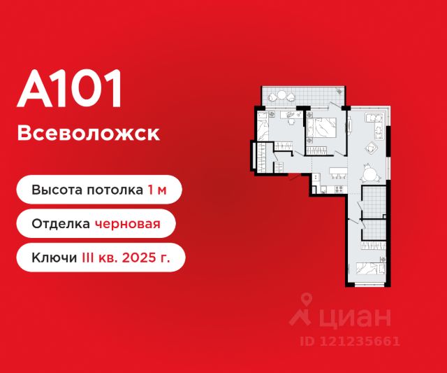 2-комнатная квартира площадью 84.80 в ЖК "А101 Всеволожск" на 1 этаже. Квартира без отделки. Вид из окна во двор. В квартире 2 санузла. Высота потолков 3.68 м. Особенность планировки - патио, гардеробная, мастер-спальня. Предложения от застройщика на февраль 2026: - Гибкая рассрочка 20 000 руб/мес. и первым взносом 10%. ОТДЕЛКА Квартира передается без отделки. Благодаря тому, что в данном типе отделки стены не возводятся, вы сможете создать удобную планировку и самостоятельно организовать зонирование комнат. ОСОБЕННОСТИ ПЛАНИРОВКИ Места для хранения находятся в прихожей и жилой зоне квартиры, дополнительно можно получить доступ к кладовым на подземном уровне (площадь - 2-8 кв. м). Мастер-спальня включает отдельную ванную комнату или гардеробную, что обеспечивает дополнительный комфорт и уединение. Патио представляет собой небольшой индивидуальный дворик с выходом из квартиры. Это пространство огорожено живой изгородью, накрыто навесом, а пол покрыт бетонной плитой. ПАРАДНАЯ В каждой парадной предусмотрены места для хранения велосипедов и колясок, гостевой санузел, лапамойка (место для мытья домашних животных или колес велосипедов) и удобная зона ожидания для гостей. ДВОРЫ И ОКРУЖЕНИЕ Просторные дворы свободны от машин и закрыты от посторонних. Большую часть комплекса займут благоустроенные зелёные зоны, теневые сады и городские общественные пространства с развитой тротуарной сетью и велодорожками. Каждый дом оборудован системами видеонаблюдения и контроля доступа. Не хватает средств на покупку кладового помещения? Оформите ипотеку на квартиру и добавьте к ней часть стоимости кладовой. ЗАСТРОЙЩИК ГК "А101" - крупный инвестиционно-строительный холдинг, занимает 6-е место по объему строительства в России (по данным "Единого ресурса застройщиков" на 2023 год). НКР присвоило ГК "А101" кредитный рейтинг A+.ru, подтверждая его надежность и финансовую устойчивость для завершения строительства ЖК. Продается квартира на 1 этаже в Всеволожске.