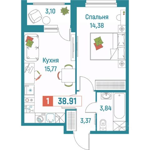 Квартира площадью 37,71 м², с комнатой 14,18 м² и просторной кухней 11,52 м². Санузел раздельный, есть лоджия. Расположена на первом этаже - удобно для семьи с детьми, пожилых людей или просто тех, кто не любит ждать лифт. Из окон открывается приятный вид на парк, рядом нет шумных дорог в квартире будет тихо и спокойно.
