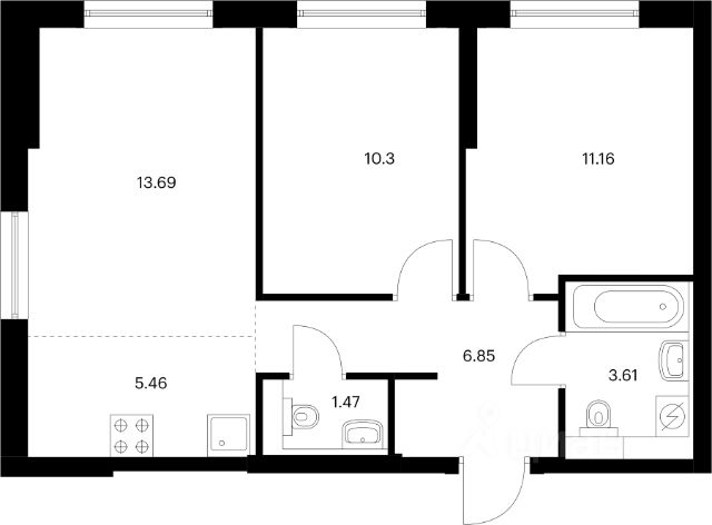 • Большая отдельная кухня 11.1 м² с выходом на просторный балкон — место для семейных ужинов, завтраков у окна и приема гостей.