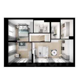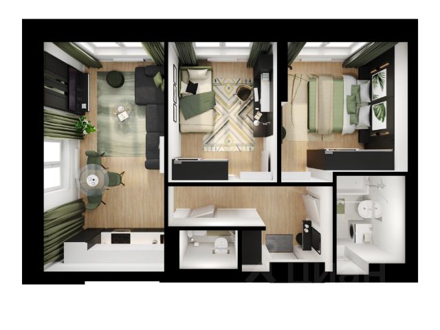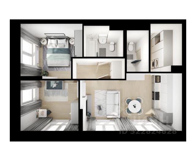 • Просторная комната для организации полноценной спальной и рабочей зоны.
