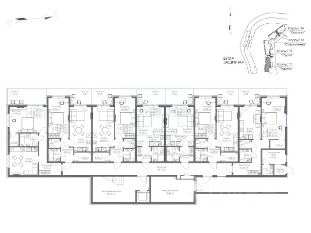 "Малая Финляндия" - квартал с собственной инфраструктурой, детскими площадками, зонами отдыха и причалами для катеров. Комфортные условия для жизни рядом с центром Выборга, на мысе Папула. Побережье Финского залива, на котором располагается жилой комплекс, является сказочным по красоте местом с наклонным рельефом. Отсюда открываются живописные виды на залив и на средневековый замок. Здесь шумит ветер и волна прибоя. А звуки города остаются далеко за пределами комплекса. Здесь спокойно, уютно и надежно. Трехэтажные дома-резиденции с лифтом у залива. Четыре корпуса: "Порвоо", "Раума", "Савонлинна" и "Хамина" с высокими потолками (2,89 м) и собственными террасами у жителей первых этажей, большими и широкими лоджиями на вторых и третьих этажах. Виды на залив у обладателей всех без исключения квартир.