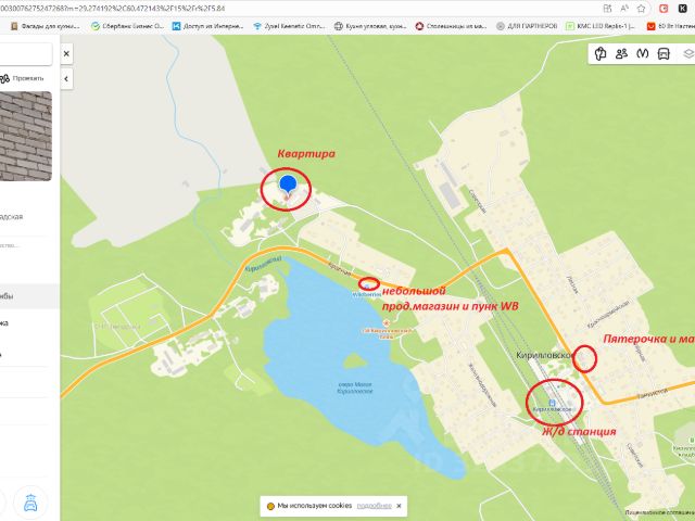 Продается 2х комн. квартира на 1м этаже в 2х этажном многокв. кирпичном доме со всеми удобствами. Электроснаб, отопление от котельной в воинской части, скважина. Квартира теплая. Общая жилая площадь 46 м.кв. Потолки 2,7 м. Глубокие большие подоконники. В 2018 г. В квартире сделан кап.ремонт. Выровнены стены, потолки, залиты полы. Заменена сантехника и электрика. Положен ламинат, единый на всю квартиру. Декоративные МДФ панели в комнатах на потолке, в гостиной сделана 2х ур. подсветка. В кухне и с/у потолки из металл. панелей. Межкомн. двери из экошпона. Новая входная дверь с утеплением. Отделка санузла полностью кафель пол и стены. Установлена душ. кабина с душем тропический ливень, бойлер Ariston. Раковина, унитаз. Электр. полотенцесушитель. Стир. машинка. Количество жилых комнат 2 (изолированная и комната-гостиная проходная). Сделана небольшая перепланировка - кухня объединена через арку с комнатой-гостиной. В поселке развитая инфраструктура ж/д станция (прямая ветка до СПб, м.Удельная, и до г. Выборг). На ней останавливаются все электрички. Магазины Пятерочка, Магнит в центре поселка возле ж/д станции. Пункт WB, и частный продуктовый магазин. Хорошее кафе с русской кухней. Все это в пешей доступности от кв. Так же в поселке есть лесное озеро с песчаным пляжем. Для купания, плавания на лодке, ловли рыбы. Расположено 250 метров от кв. (см.фото карты) Практически сразу за домом (90 метров) вход в сосновый бор, черничник. Летом много ягод (черника, брусника), грибов. Лес типичный бор, без бурелома, в любую погоду проходим для прогулки. Когда-то это были финские территории, потому и природа типичная для финской. Так как в поселке размещена воинская часть, то всегда здесь царит полный порядок. Зимой всегда почищена грейдером дорога, всегда есть свет, вода, а при поломках это чинится коммунальными службами в кратчайший срок. Отсутствует мародерство, нет захожих кочующих людей. Тишина и покой. За счет окружения лесом звуки ж/д не мешают. Во дворе всегда есть место для парковки. От СПб до поселка и далее широкополосная дорога до Выборга. Соединенная с ЗСД. Путь без пробок ~1 час 15 мин. Поселок находится на ответвлении шоссе и после него по своротке расположен еще только один поселок, где проживают в основном военнослужащие. Трафик машин через поселок отсутствует. Из вещей остается все перечисленное в с/у. В комнатах-шкафы для одежды, комод, сервант. Два 2х-сп. дивана. На кухне небольшой хол-к (1450 мм) . Мойка со смес., стол для готовки. Есть все необходимое для проживания или сдачи. Ремонт и мебель в хорошем состоянии. Установлена тарелка спутникового ТВ. Прекрасное место как дача на вых. и праздники, так и для постоянного проживания. С учетом воинской части так же всегда актуален спрос на сдачу жилья. Прямая продажа, 1 взрослый собственник (более 7 лет), никто не прописан. Оформление - наличные, ипотека, сертификаты. Готовы подъехать показать в удобный день, но запись на просмотр заранее. Агентства не беспокоить, только покупатели!
