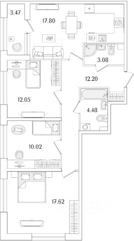 Встречная покупка 3 ккв большей площади в этом же районе.