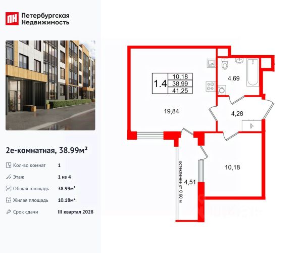 Продается просторная 1-комнатная квартира от застройщика в жилом комплексе "Univer City" в на юге Санкт-Петербурга. До метро можно добраться на транспорте всего за 30 минут. Удобная, классическая, функциональная европланировка, большая кухня-гостиная 19.84 м², просторная прихожая 4.28 м². Общая площадь квартиры - 38.99 м², жилая 10.18 м², высота потолка 2.77 м. Квартира продается с отделкой "Норд Лайн светлый". Что особенного в ЖК "Univer City"? • Малоэтажное строительство • Скандинавские фасады с отделкой керамогранитом, акцентные входные группы • Закрытые внутренние дворы без машин • Пешеходный променад с тематическими зонами, еловый сквер и яблоневый сад • Univer Park, включая SetlSport и SetlKids, площадку для выгула собак и зоны отдыха • Инновационный Лицей Setl с оригинальной архитектурной концепцией и уникальной образовательной средой