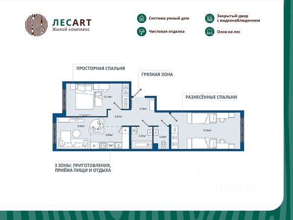Продаётся 1-комнатная квартира 097, общей площадью 43.25 кв.м., на 1. Дом комфорт-класса, 12 этажей, в окружении леса и малоэтажной застройки. Проект с умным домом. Передача квартир в апреле 2026г. РАСПОЛОЖЕНИЕ И БЛАГОУСТРОЙСТВО Расположение ЖК "ЛесART" порадует любителей чистого воздуха — рядом находятся лесопитомник и Шунгеровский заказник. Особенность комплекса это его ART дворы, которые оформлены по мотивам произведений Василия Кандинского, Пита Мондриана и Пабло Пикассо. Дворы закрыты от машин, что обеспечивает безопасность детей и взрослых. Для семей с детьми особенно удобно наличие детского сада и школы прямо во дворе комплекса. На первом этаже расположены магазины, маркетплейсы, кофейни и всё что необходимо для повседневной жизни. Холлы - это продуманные пространства с колясочными, сквозными проходами и приятной музыкой в лифтах. СИСТЕМА УМНОГО ДОМА В КАЖДОЙ КВАРТИРЕ - Комфорт. Управление освещением, мультимедиа и климат-контролем. - Безопасность. Видеонаблюдение и мониторинг систем безопасности. - Экономия. Контроль систем и оптимизация энергопотребления. - Удобство. Управление с помощью мобильного телефона. ГК "ЕДИНО" Входит в тройку компаний-лидеров региона по потребительским качествам жилых комплексов, объемам ввода жилья и объемам текущего строительства. В цифрах: - 23 года на рынке - Более 50 построенных домов - 60 000+ счастливых обладателей квартир ПРЕИМУЩЕСТВА ПОКУПКИ В ЖК "ЛЕСART": - Сниженная ставка по семейной ипотеке от 5,5%; - Рассрочка без переплаты; - Обмен старой квартиры на новую без комиссии; - Возможность использовать материнский капитал; ЗАПИСЫВАЙТЕ НА ПРОСМОТР! Мы ждем Вас в нашем уютном шоуруме. Вы увидите отделку, дизайнерские решения и познакомитесь со сценариями Умного дома! Такси до офиса продаж и обратно БЕСПЛАТНО!