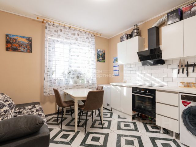 * Кухонный гарнитур, стеклокерамическая плита BOSCH , а также кухонный уголок, стол и пуфики остаются будущим владельцам.