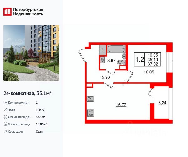 Представляем отличное предложение: однокомнатная квартира 32 м² в современном ЖК ArtLine от Setl City, расположенном в сердце Приморского района.