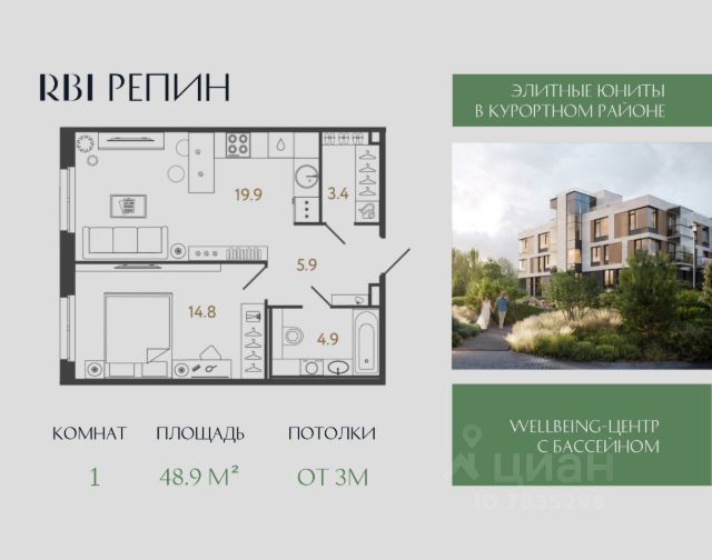 "Репин" — элитный лаунж-комплекс от RBI в Курортном районе Петербурга в посёлке Репино по адресу Приморское шоссе, 441. Шоссе считается петербургским аналогом трассы Канны Ницца Монако. Вместо пиний — сосновый лес, который сменяется открытыми морскими видами хотя и не Средиземного моря, но такого же просторного Финского залива. Проезжая по Приморскому шоссе, вы уже отдыхаете. После Репинских Пенатов дорога круто поворачивает к югу и совершает плавную дугу к западу — именно здесь в 400 метрах от залива располагаются роскошные виллы вэлнес-комплекса "Репин". Формат проживания камерный — без суеты и лишнего шума. В четырёх виллах всего 84 сити-хауса. Есть номера с палисадниками и отдельным входом, лоты с террасами и возможностью установки дровяного камина, двухэтажные юниты с двусветной кухней-гостиной, высота потолков в которой достигает 6,3 или 6,6 метров. На типовых этажах потолки 3 метра, на последнем этаже — 3,3 метра. Площадь юнитов от 45,8 до 150,7 м² — можно приобрести инвестиционный лот под сдачу в аренду или купить номер для собственного роскошного проживания. Конструкция стен продумана таким образом, чтобы вы могли реализовать перепланировку пространства вплоть до объединения соседних юнитов с сохранением высокой звукоизоляции между номерами. На территории комплекса находятся ещё два инфраструктурных корпуса — они располагаются вдоль шоссе и создают визуальный и акустический барьер для вилл. В первом корпусе находятся центральная входная группа с ресепшн и зоной ожидания гостей, ресторан с отдельным входом и wellbeing-центр, где оборудуют спортзал, бассейн, хамам и сауну. Всё, чтобы вы могли переключиться от рутины и обрести себя заново! Во втором корпусе — трёхуровневый паркинг на 60 машиномест. Ещё 10 м/м на уличной автостоянке. Все виллы — малоэтажные и размещены в шахматном порядке, чтобы вы могли наблюдать умиротворяющий пейзаж прямо из окон или с террасы своего номера. Лаконичная скандинавская архитектура вторит окружению и способствует расслаблению, а декоративная ландшафтная подсветка преображает комплекс в сумерки. Приватная охраняемая территория утопает в зелени: равнины перемежаются с живописными холмами, создавая аллюзию на пейзажный парк. Среди всей этой красоты благоустроены разнообразные лаунжи: две открытые площадки для встреч у костра и обогреваемая фуршетная зона, подиум с деревянными шезлонгами и декоративный водоём с кинетической скульптурой от Владислава Муханова и Ивана Зубарева. Дети могут играть на экологичной детской площадке во дворе, а спортсмены — заниматься на профессиональных уличных тренажёрах FOREMAN. Refresh-коплекс "Репин". Ваш источник безмятежности в лоне природы побережья Финского залива!