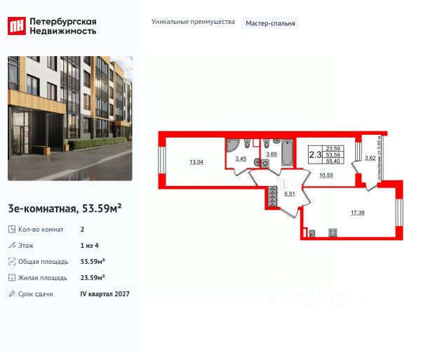 Продается уютная 2-комнатная квартира от застройщика в жилом комплексе "Univer City" в на юге Санкт-Петербурга. До метро можно добраться на транспорте всего за 30 минут. Удобная, классическая, функциональная европланировка, большая кухня-гостиная 17 м², вместительная прихожая 5.69 м². Общая площадь квартиры - 55.81 м², жилая 26.06 м², высота потолка 2.77 м. Квартира продается с отделкой "NORD LINE WHITE". Что особенного в ЖК "Univer City"? • Малоэтажное строительство • Скандинавские фасады с отделкой керамогранитом, акцентные входные группы • Закрытые внутренние дворы без машин • Пешеходный променад с тематическими зонами, еловый сквер и яблоневый сад • Univer Park, включая SetlSport и SetlKids, площадку для выгула собак и зоны отдыха • Инновационный Лицей Setl с оригинальной архитектурной концепцией и уникальной образовательной средой