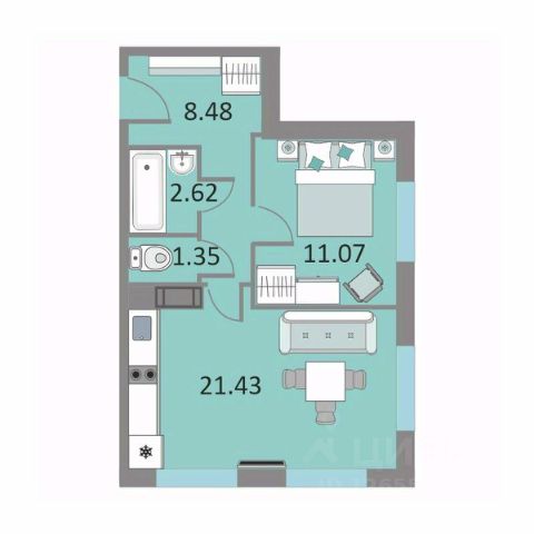 - Совмещённый санузел (3.5 м2) с ВАННОЙ.