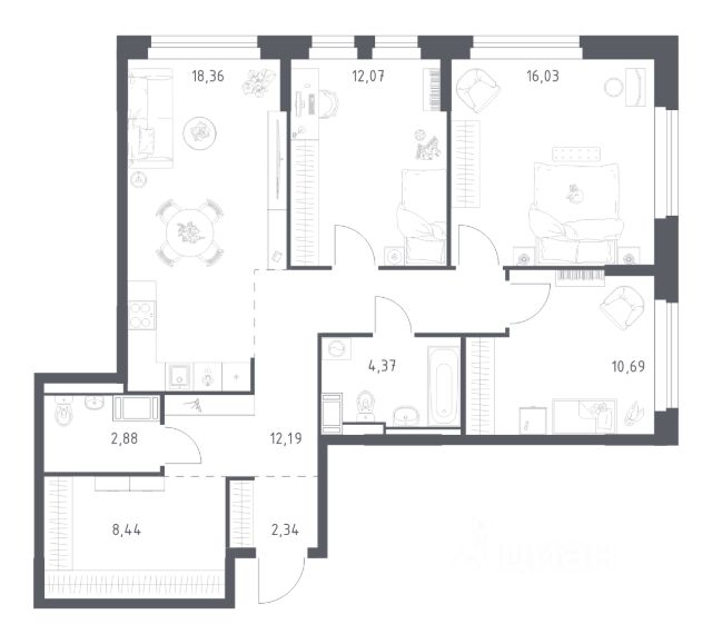 В продаже 3-комнатная квартира в корпусе 35.1 ЖК 'Новое Колпино'. Квартира располагается на 10 этаже, общая площадь 87.37 м2.