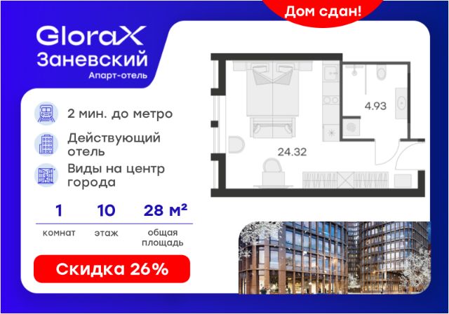 Продается 2-комн. апартамент на 10-м этаже в сданном Апарт-комплексе бизнес-класса "GloraX Заневский". Ключи сразу! Общая площадь лота составляет 43,10 кв. м, из которых 23,20 кв. м отведено под жилую. Номер апартамента - 1 008. Преимущества: - Полная чистовая отделка - Возможность покупки меблировка и техника - Вход по ключ-карте - Прачечная на 1 этаже - Возможность дозаказа отельного сервиса - Программы доходности - Летний бар и променад - Воркаут площадка - Pet-friendly Апартаменты "GloraX Заневский" - проект бизнес-класса с развитой инфраструктурой, удовлетворяющей все потребности самых взыскательных гостей. Располагается в одном из наиболее перспективных, районов Петербурга в 2х минутах от метро "Ладожская" и в 10 минутах от Невского проспекта. В "GloraX Заневский" есть все, что необходимо для комфортной жизни, работы и отдыха. Инфраструктура, покрывающая все потребности и ожидания собственников и арендаторов. В радиусе 150 метров находятся супермаркеты с возможностью доставки продуктов прямо до дверей апартаментов. На 1000 кв. м. общественных пространств расположится уютный лобби-бар, ресторан мировой кухни на 80 человек и оборудованные коворкинги. В апартаментах "GloraX Заневский" выполнена современная отделка с использованием высококачественных экологичных материалов. В проекте предусмотрен подземный отапливаемый паркинг на 100 мест, куда можно спуститься на лифте прямо от дверей апартаментов. Узнайте подробности в Отделе продаж.