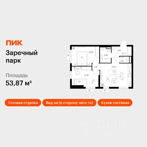 + Квартира полностью готова к проживанию: качественный ремонт + мебель/техника.