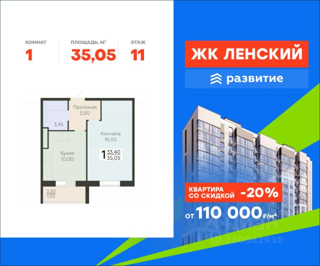 В продаже квартира площадью 42.00 кв. м с отделкой white box на 11 этаже 16 этажного дома. Квартира находится в 4834 корпусе: Жилой комплекс "Ленский" - место, где встречаются природа и городская среда, а умиротворение загородной жизни сочетается с комфортом. Проект располагается на северо-востоке Санкт-Петербурга, в Южном микрорайоне Всеволожска, в 16 км от КАД, с удобным выездом на Колтужское шоссе и Дорогу Жизни. В его состав входят два 18-этажных корпуса с видами на Колтушские высоты, сервисы повседневной инфраструктуры, собственный приватный двор, просторный паркинг для жителей и гостей. Девелопер проекта - федеральный застройщик ГК "Развитие". Транспортная доступность На автомобиле: • 30 мин до станции метро "ул. Дыбенко" • 35 мин до центра Санкт-Петербурга Архитектура Архитектурный облик отличается современным дизайном. Панорамные окна с большой площадью остекления наполняют квартиры светом, актуальная финская технология Peikko защищает квартиры от промерзания даже в северном климате. Дома прочные, долговечные, их конструкция гарантирует тёплый микроклимат зимой, прохладу летом и отличную звукоизоляцию. Планировочные решения Функциональные планировки отличаются простотой и эргономичностью, пространство эффективно используется даже на небольшой площади. К кухне примыкает просторная лоджия с панорамным остеклением, во всех двух- и трехкомнатных квартирах - по два санузла. Все квартиры сдаются с отделкой white box, которая позволяет существенно сократить стоимость и сроки ремонта. По желанию доступны варианты чистовой отделки под ключ: "комфорт" и "бизнес" с использованием современных материалов. Благоустройство - приватный двор без машин; - всесезонное озеленение; - спортивный корт для футбола и баскетбола; - детские площадки с мягким покрытием; - площадка для настольного тенниса; - скамейки и беседки для отдыха по всему периметру; - прогулочные и велосипедные дорожки в тени деревьев; - сквозные парадные с большими окнами; - просторная входная группа на уровне земли; - колясочные помещения; - торговая галерея в шаговой доступности. Окружение - 5 парков: заповедник "Колтушские высоты", парк "Софиевка", "Румболовский", "Кенша", Державинский и Алексеевский парки. За 5-10 минут можно добраться транспортом до Песчанки и Петропавловского парка. Ковалевский лесопарк выделяется прекрасными экотропами, зонами для пикников и велодорожками, а Ждановские озера - благоустроенными пляжами; - рядом Колтушинский фреш-маркет с фермерскими продуктами и крупный ТЦ "Юбилейный", где работают более 70 магазинов, кинотеатр и фуд-корт; - 10 детских садов, начальная и средняя школы, центры дополнительного образования, творческие секции; - в ближайшей доступности фитнес-центры, бассейн, теннисный клуб и даже центр верховой езды; - культурные и знаковые места: Музей-усадьба "Приютино", музей "Дом Авиаторов", мемориальный комплекс "Дорога Жизни", многочисленные пешеходные маршруты.