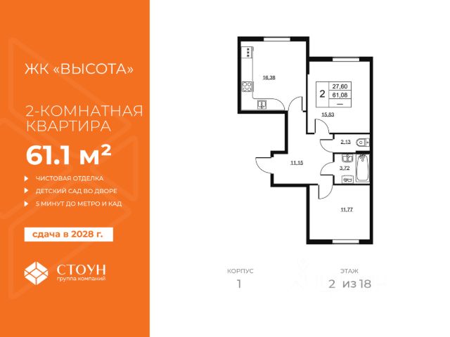 Продаётся 1-комнатная квартира в сданном доме (Нижняя, 5к2 (Дом 5 Корпус 2)), срок сдачи: I-кв. 2024, общей площадью 38.24 кв.м., на 1 этаже. Расположение, транспортная доступность
