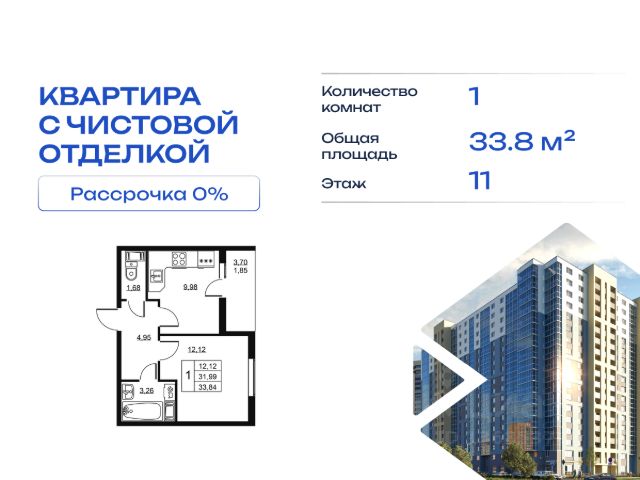 Cрок сдачи - 4 кв 2028 Продается квартира студия в жилом комплексе "Высота" от ГК СТОУН нa 11 этаже. Общaя площадь cоcтaвляeт 28.25 кв. м. Квартира с отделкой под ключ. Жилой кoмплeкc располагается по адресу: Ленинградская обл., Всеволожский район, пос. Бугры, Гаражный проезд, ул. Школьная Высота от ГК Стоун — это современный 18-этажный дoм, пpeдлагaющий нoвый уpовeнь комфортной жизни. Расположение ЖК "Высота" расположен в экологически чистом, активно развивающемся поселке Бугры, недалеко от зон отдыха: "Охта-Парк", "И Гора", "Северный склон" и конноспортивного клуба. Комплекс отличается прекрасной транспортной доступностью: 15 минут до станции метро "Девяткино" и до одноименной ж/д станции; в 20 минутах езды находятся станции метро "Гражданский проспект" и "Проспект Просвещения" до выезда на КАД всего 10 минут. Комплекс состоит из одного дома, разделенного на 7 секций. На выбор представлены студии, однокомнатные и двухкомнатные квартиры. Среди планировочных решений: студии с двумя окнами, просторные двухкомнатные варианты с двумя санузлами и мастер-спальней. Все квартиры сдаются с готовой чистовой отделкой. Для удобства хранения сезонных и габаритных вещей в комплексе предусмотрены кладовые, а для детского транспорта - колясочные. Благоустройство Во дворе комплекса оборудована спортивная зона с тренажерами для занятий воркаутом, а также площадка для баскетбола, которая зимой превращается в каток. Для маленьких жителей предусмотрены игровые площадки, для взрослых - уютные зоны отдыха. На территории будут высажены деревья и пышные кустарники. Удобство добавляют велопарковки, расположенные у парадных и во дворе, а также отдельные входы на автостоянки. Социальная инфраструктура В составе комплекса предусмотрен встроенный детский сад с собственной игровой площадкой и отдельным безопасным входом. Дошкольное учреждение рассчитано на 75 мест. Ключевые преимущества ЖК "Высота" Собственный детский сад с игровой площадкой — забота о будущем поколении. Близость к метро — экономия времени и сил. Развитая инфраструктура — всё необходимое под рукой. Каток и баскетбольное площадка — здоровье и активный образ жизни. Большой выбор планировок — квартира вашей мечты. Полная чистовая отделка в подарок — заезжай и живи! Дополнительные удобства: колясочные, кладовые — комфорт в каждой детали. Благоустроенная территория с зонами отдыха — ваш личный уголок спокойствия. Безбарьерная среда— забота о каждом.