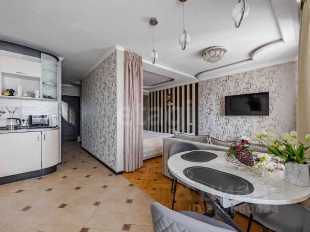 Кухня-12,2кв.м, оборудована современной мебелью и техникой Воsh(посудомойка, варочная поверхность, духовка). Холодильник LG класса Sidе by Sidе с ледогенератором и мини баром-подключен к водопроводу, установлены фильтры. Встроенная кухня остается покупателю.