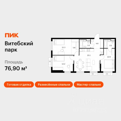 Комната 18,3кв.м-2 окна на 2 стороны, утепленный балкон, установлена сплит система FUJIТSU ;комната 14,6 кв.м. - с эркером, вид -на ухоженный,благоустроенный Парк Героев-Пожарных с водоемами; комната 18,1кв.м-2 окна на 2 стороны,с утепленным балконом.