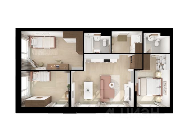 Просторные изолированные жилые комнаты. Много окон - на 3 стoрoны.
