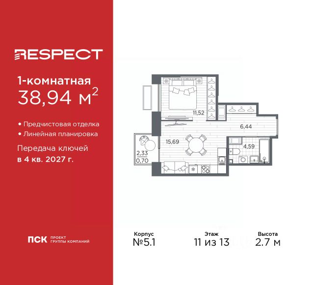 - удобная планировка: просторная прихожая и кухня, гардероб, раздельный санузел, комната 19 кв.м. с выходом на балкон, вместительная ванная с местом для стиральной машины;