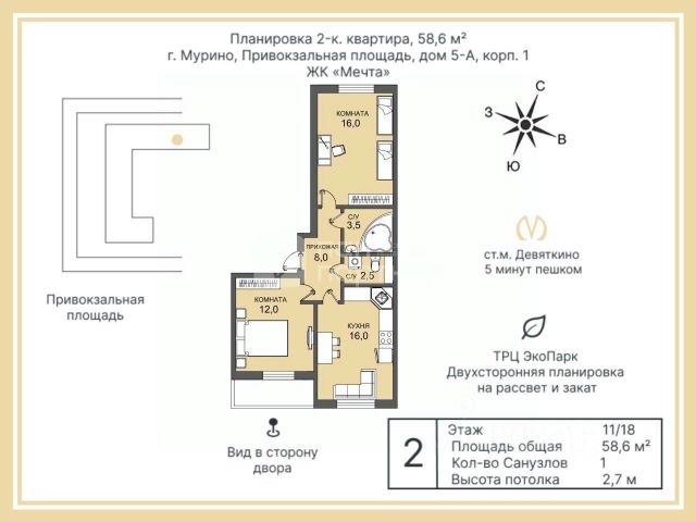 Продаётся 2-комнатная квартира в сданном доме (Шоссе в Лаврики, 78к3 (Корпус 10)), срок сдачи: III-кв. 2023, общей площадью 57 кв.м., на 11 этаже. Расположение, транспортная доступность
