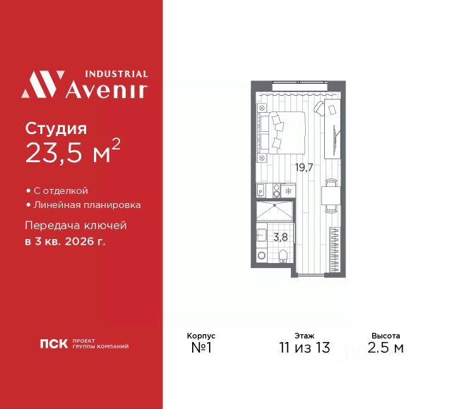 Продаются однокомнатные апартаменты-студия с отделкой в ЖК "Industrial AVENIR" на 11 этаже. Общая площадь: 24.5 кв.м., площадь гостиной 20.7 кв.м., из которых 5 кв.м. выделено под кухонную зону. Все окна выходят на одну сторону. В апартаментах один совмещенный санузел. Высота потолков 2.5 м. Апартаменты находятся в корпусе 1. Дом монолитный, одноподъездный, высотой 13 этажей. На этаже 64 квартиры. В подъезде 3 пассажирских и 3 грузовых лифта. Окончание строительства - 3 квартал 2026 года. Оформление сделки по договору долевого участия. В шаговой доступности от дома находятся станции метро (расстояние по прямой): "Кировский завод" (300 м), "Автово" (1.6 км), также недалеко от этого корпуса находятся станции метро: "Нарвская", "Ленинский Проспект", "Балтийская". 13ти этажное здание апарт-отеля строится по монолитной технологии. В номерном фонде 739 апартаментов, в том числе юниты с террасами и в формате "евро 2", офисные и коммерческие помещения, оборудованный коворкинг, подземный паркинг. На первом этаже лобби 160 кв.м. с рецепшн, выставочным пространством, кафе и гостевой зоной. Окончание строительства апарт - отеля - III квартал 2026 года. Оформление сделки по договору долевого участия. Семейная ипотека на апартаменты не распространяется. ОТДЕЛКА Все апартаменты сдаются с полной чистовой отделкой, выполненной в концептуальном индустриальном стиле. Стены оформлены обоями под покраску в сером оттенке. Одна из стен акцентная - с декоративной штукатуркой, имитирующей бетон. Элементы черного металла представлены в трековых светильниках, дверной фурнитуре и сантехнике. На полу уложен износоустойчивый ламинат с деревянной фактурой. Еще одним элементом индустриального стиля в отделке апартамента является крупноформатный керамогранит на полу и стенах санузла, имитирующий фактуру и цвет кортеновской стали. ЗD по шоу руму. РАСПОЛОЖЕНИЕ Апарт-отель Industrial Avenir строится в 300-х метрах от метро "Кировский завод" и "Путиловская" (открытие 2025 г) на центральной магистрали Кировского района проспекте Стачек. Близость развязок с ЗСД и КАД фактически снимает любые ограничения в осмотре пригородов и выбора направлений в личном туристическом плане на день. Предпосылкой для открытия пятого апарт-отеля сети Avenir - Industrial Avenir, стал высокий потенциал локации рядом с крупным производственным кластером, центральной магистралью Кировского района и шаговой доступностью от двух станций метро. Новый апарт-отель возводится рядом с первым апарт-отелем сети - Putilov Avenir, открытым в 2022 году. УПРАВЛЕНИЕ ДОХОДНОСТЬЮ Управлением номерным фондом Industrial Avenir займется структура ГК "ПСК" PSK Invest, входящая в пятерку крупнейших управляющих компаний апарт-отелями в Санкт-Петербурге. Купить апартаменты в Industrial Avenir возможно сразу с управлением, заключив договор с УК PSK Invest и, тем самым, приобрести готовый арендный бизнес. Апартаменты недвижимое имущество, которое является вашей собственностью, и вы капитализируете свои вло