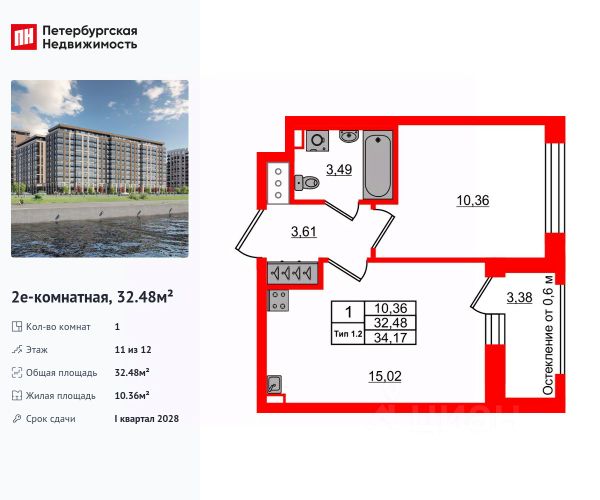 Цена действует при 100% оплате и на определенные ипотечные программы. Подробности — в отделе продаж по телефону. Продаётся студия в ЖК "Цивилизация на Неве" на 11 этаже. Общая площадь составляет 23.77 кв. м. Квартира с white box отделкой. Жилой комплекс "Цивилизация на Неве" располагается по адресу Санкт-Петербург, Невский. "Цивилизация на Неве" - видовые дома бизнес-класса, расположенные вдоль набережной Невы, всего в 7 км от исторического центра. Жилой комплекс идеально выражает особый дух, свойственный знаменитым просторным кварталам постройки сталинской эпохи в Москве и на Московском проспекте в Петербурге. Расположение: • 15 мин на авто до Невского проспекта; • 15 мин на авто до Московского вокзала; • 5 мин на авто до станции метро "Улица Дыбенко"; • 14 мин (7 км) до КАД. Уникальный дизайн входных зон, закрытая территория, видеонаблюдение и охрана, подземный паркинг с лифтом и другие особенности проекта отвечают заявленному классу. В каждом дворе предусмотрено озеленение по индивидуальному ландшафтному проекту с благородными растениями и кустарниками. Преимущества: • Закрытая территория с видеонаблюдением; • Подземный паркинг с лифтом; • Детская площадка на приватной безопасной территории; • Несколько детских садов и школ; • Инфраструктура шаговой доступности на первых этажах корпусов. Успейте приобрести квартиру на выгодных условиях! Чтобы узнать подробности, обращайтесь за консультацией по телефону.