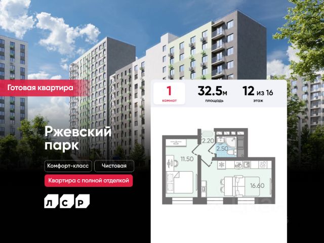 Цена действует при 100% оплате и на определенные ипотечные программы. Подробности — в отделе продаж по телефону. Продается 1-комнатная квартира в ЖК "ЛСР. Ржевский парк" на 12 этаже. Общая площадь составляет 33.10 кв. м. Квартира с чистовой отделкой. Жилой комплекс "ЛСР. Ржевский парк" располагается по адресу Ленинградская область, Всеволожский район, Ковалёво пос.. ЛСР. Ржевский парк - современный масштабный эко-проект: с пешеходными бульварами и велодорожками, площадками для спорта и отдыха в 30 минутах от центра Санкт-Петербурга. Расположение комплекса: • 13 минут до ж/д станции "Ковалёво"; • 30 минут до центра Санкт-Петербурга на автомобиле; • 26 минут до Финляндского вокзала. Квартира сдается с готовой отделкой из современных экологичных материалов: ламинированные межкомнатные двери, двухкамерные стеклопакеты, флизелиновые обои, качественный матовый ламинат с фактурой дерева, керамическая плитка. Между домами будут устроены бульвары, пешеходные и велодорожки, игровые и спортивные площадки, зоны отдыха для детей и взрослых. На первых этажах находятся колясочные, магазины, кафе и сервисные службы. На территории построят 4 школы, 9 детских садов, 2 спортивных комплекса, поликлинику, станцию скорой помощи и пожарное депо. Первый детский сад откроется уже в 2025 году. Преимущества комплекса: • Рядом лесопарк и Ладожское озеро • Живописные виды из окон • Безбарьерная среда • Развитая социальная инфраструктура • Умный дом • Двор без машин Успейте приобрести квартиру на выгодных условиях! Чтобы узнать подробности, обращайтесь за консультацией по телефону.