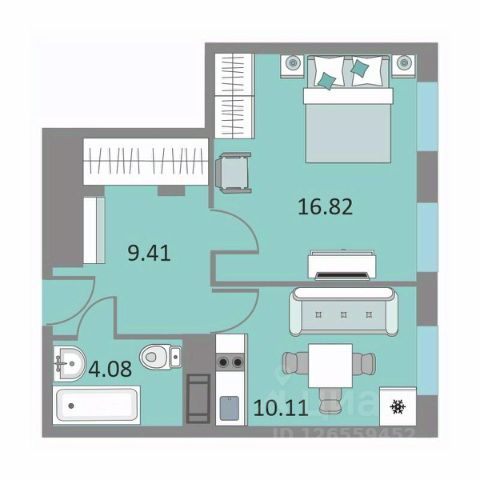 - Удачная двусторонняя планировка, в которой выделена зона кухни-гостиной и спальни (при желании, вы сможете преобразовать апартамент в полноценную однокомнатную квартиру).