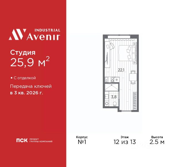 Однокомнатные апартаменты-студия от застройщика с отделкой в ЖК "Industrial AVENIR" на 12 этаже. Общая площадь: 24.5 кв.м., площадь гостиной 20.7 кв.м., из которых 5 кв.м. выделено под кухонную зону. Все окна выходят на одну сторону. В апартаментах один совмещенный санузел. Высота потолков 2.5 м. Апартаменты находятся в корпусе 1. Дом монолитный, одноподъездный, высотой 13 этажей. На этаже 64 квартиры. В подъезде 3 пассажирских и 3 грузовых лифта. Окончание строительства - 3 квартал 2026 года. Оформление сделки по договору долевого участия. В шаговой доступности от дома имеются станции метро (расстояние по прямой): "Кировский завод" (300 м), "Путиловская" (300 м), "Автово" (1.6 км), также недалеко от этого корпуса находятся станции метро: "Нарвская", "Ленинский Проспект", "Балтийская". 13ти этажное здание апарт-отеля строится по монолитной технологии. В номерном фонде 739 апартаментов, в том числе юниты с террасами и в формате "евро 2", офисные и коммерческие помещения, оборудованный коворкинг, подземный паркинг. На первом этаже лобби 160 кв.м. с рецепшн, выставочным пространством, кафе и гостевой зоной. Окончание строительства апарт - отеля - III квартал 2026 года. Оформление сделки по договору долевого участия. Семейная ипотека на апартаменты не распространяется. ОТДЕЛКА Все апартаменты сдаются с полной чистовой отделкой, выполненной в концептуальном индустриальном стиле. Стены оформлены обоями под покраску в сером оттенке. Одна из стен акцентная - с декоративной штукатуркой, имитирующей бетон. Элементы черного металла представлены в трековых светильниках, дверной фурнитуре и сантехнике. На полу уложен износоустойчивый ламинат с деревянной фактурой. Еще одним элементом индустриального стиля в отделке апартамента является крупноформатный керамогранит на полу и стенах санузла, имитирующий фактуру и цвет кортеновской стали. ЗD по шоу руму. РАСПОЛОЖЕНИЕ Апарт-отель Industrial Avenir строится в 300-х метрах от метро "Кировский завод" и "Путиловская" (открытие 2025 г) на центральной магистрали Кировского района проспекте Стачек. Близость развязок с ЗСД и КАД фактически снимает любые ограничения в осмотре пригородов и выбора направлений в личном туристическом плане на день. Предпосылкой для открытия пятого апарт-отеля сети Avenir - Industrial Avenir, стал высокий потенциал локации рядом с крупным производственным кластером, центральной магистралью Кировского района и шаговой доступностью от двух станций метро. Новый апарт-отель возводится рядом с первым апарт-отелем сети - Putilov Avenir, открытым в 2022 году. УПРАВЛЕНИЕ ДОХОДНОСТЬЮ Управлением номерным фондом Industrial Avenir займется структура ГК "ПСК" PSK Invest, входящая в пятерку крупнейших управляющих компаний апарт-отелями в Санкт-Петербурге. Купить апартаменты в Industrial Avenir возможно сразу с управлением, заключив договор с УК PSK Invest и, тем самым, приобрести готовый арендный бизнес. Апартаменты недвижимое имущество, которое является вашей собственностью, и в