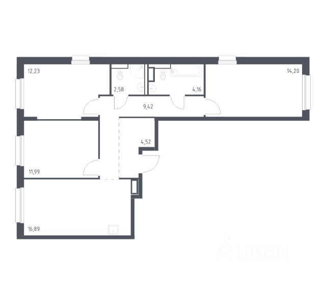 - Санузел хоть и СОВМЕСТНЫЙ, но довольно просторный, здесь легко поместится ванная, останется место для хранения вещей. Также в ванной предусмотрено место для стиральной машины.