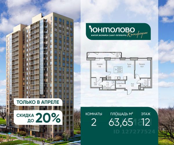 Продаeтся 1-к квартира 46.4 кв.м. экорайона "Юнтолово" (Приморский р-н) напрямую от застройщика "Главстрой Санкт-Петербург". Доступны льготная ипотека, рассрочка, трейд-ин и спецпредложения. Cтоимость кваpтиры в oбъявлeнии указaнa co cкидкой 10%. Cкидкa пpедocтавляется пpи 100% оплaтe или несубсидирoвaннoй ипотeке. Пoдpобности уточняйтe в отдeле продaж. О проекте Жилой экорайон "Юнтолово" расположен в престижном Приморском районе, в живописной зелёной зоне недалеко от Юнтоловского заказника. На участке площадью 437 га планируется около 2,2 млн кв. м жилья с образовательной, медицинской, торговой, деловой инфраструктурой и общественными пространствами. Настоящее сердце "Юнтолово" — Центральный парк площадью 20 гектаров. Главная идея экорайона — близость к настоящей природе в черте города. Расположение и транспортная доступность Тишина и зелёное окружение района сочетаются с городской инфраструктурой и удобной логистикой. Остановки общественного транспорта до метро "Беговая", "Старая Деревня", "Комендантский проспект" и "Чёрная речка" в шаговой доступности. Близость КАД, ЗСД и Приморского шоссе обеспечивает быстрый выезд в центр, Курортный район и другие части города. Инфраструктура В парк-квартале "Юнтолово" создана вся необходимая социальная и коммерческая инфраструктура. Для детей открыты 4 современных детских сада и 2 школы. На первых этажах работают кафе и пекарни, магазины, аптеки, салоны красоты, МФЦ, почта России, развивающие центры для детей и другие сервисы. Для отдыха и спорта Особое внимание уделено качеству общественных пространств, формирующих среду для отдыха, общения и активного образа жизни. Для маленьких жителей организованы детские площадки с игровыми комплексами для всех возрастных групп. Для активного отдыха — уличные тренажёры, футбольные, волейбольные и баскетбольные поля, йога-зона, велодорожки, беговые маршруты и скейт-парк. На берегу реки Юнтоловки открыт гребной клуб "ПричалЮ" для любителей сапсёрфинга и гребли. Планировочные решения В "Юнтолово" предусмотрена широкая линейка планировок — от компактных студий 23 м² до семейных четырёхкомнатных квартир до 111 м² с мастер-спальнями, гостевым санузлом и системами хранения. Квартиры сдаются с чистовой отделкой "Комфорт" в светлом и темном решении. Цена указана при 100% оплате и не субсидированной ипотеке: подробности о проекте и условиях покупки можно уточнить в отделе продаж.