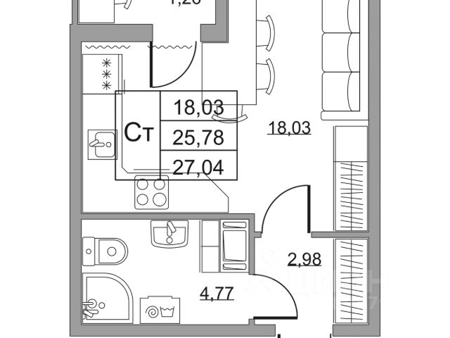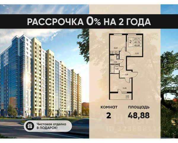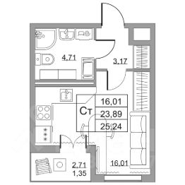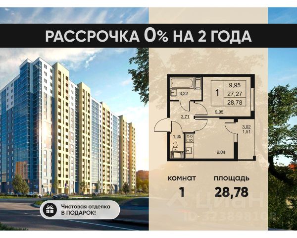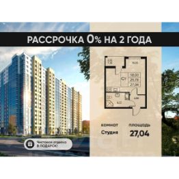 Cрок сдачи - 4 кв 2028 Продается квартира студия в жилом комплексе "Высота" от ГК СТОУН нa 13 этаже. Общaя площадь cоcтaвляeт 25.58 кв. м. Квартира с отделкой под ключ. Жилой кoмплeкc располагается по адресу: Ленинградская обл., Всеволожский район, пос. Бугры, Гаражный проезд, ул. Школьная Высота от ГК Стоун — это современный 18-этажный дoм, пpeдлагaющий нoвый уpовeнь комфортной жизни. Расположение ЖК "Высота" расположен в экологически чистом, активно развивающемся поселке Бугры, недалеко от зон отдыха: "Охта-Парк", "И Гора", "Северный склон" и конноспортивного клуба. Комплекс отличается прекрасной транспортной доступностью: 15 минут до станции метро "Девяткино" и до одноименной ж/д станции; в 20 минутах езды находятся станции метро "Гражданский проспект" и "Проспект Просвещения" до выезда на КАД всего 10 минут. Комплекс состоит из одного дома, разделенного на 7 секций. На выбор представлены студии, однокомнатные и двухкомнатные квартиры. Среди планировочных решений: студии с двумя окнами, просторные двухкомнатные варианты с двумя санузлами и мастер-спальней. Все квартиры сдаются с готовой чистовой отделкой. Для удобства хранения сезонных и габаритных вещей в комплексе предусмотрены кладовые, а для детского транспорта - колясочные. Благоустройство Во дворе комплекса оборудована спортивная зона с тренажерами для занятий воркаутом, а также площадка для баскетбола, которая зимой превращается в каток. Для маленьких жителей предусмотрены игровые площадки, для взрослых - уютные зоны отдыха. На территории будут высажены деревья и пышные кустарники. Удобство добавляют велопарковки, расположенные у парадных и во дворе, а также отдельные входы на автостоянки. Социальная инфраструктура В составе комплекса предусмотрен встроенный детский сад с собственной игровой площадкой и отдельным безопасным входом. Дошкольное учреждение рассчитано на 75 мест. Ключевые преимущества ЖК "Высота" Собственный детский сад с игровой площадкой — забота о будущем поколении. Близость к метро — экономия времени и сил. Развитая инфраструктура — всё необходимое под рукой. Каток и баскетбольное площадка — здоровье и активный образ жизни. Большой выбор планировок — квартира вашей мечты. Полная чистовая отделка в подарок — заезжай и живи! Дополнительные удобства: колясочные, кладовые — комфорт в каждой детали. Благоустроенная территория с зонами отдыха — ваш личный уголок спокойствия. Безбарьерная среда— забота о каждом.