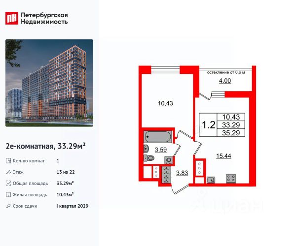 Прямая продажа от застройщика! Ищете идеальное место для семейной жизни? Жилой комплекс "Тандем" в поселке им. Свердлова создан для тех, кто ценит безопасность, комфорт и близость к природе. Закрытая придомовая территория с детской площадкой обеспечит безопасность ваших детей, а подземный паркинг сохранность вашего автомобиля. Квартиры: Выберите идеальное жильё для себя и своей семьи от уютных студий до просторных трёхкомнатных и евроформата, площадью от 24 до 80 м². В некоторых планировках предусмотрены увеличенные гостиные (до 23 м²) и кухни (до 17 м²), а также кладовые помещения для максимального комфорта. Каждая квартира имеет балкон, где вы сможете наслаждаться свежим воздухом и живописными видами. Транспортная доступность: Быстрый выезд на КАД и Вантовый мост (10-15 минут) позволит легко добраться до любой точки Санкт-Петербурга и области. Станция метро "Ломоносовская" находится всего в 20-25 минутах езды, а рядом с комплексом расположена остановка общественного транспорта. В шаговой доступности находится: Пункты выдачи Ozon, Wildberries и Яндекс.Маркет Детский сад напротив дома Общеобразовательная школа рядом с комплексом Детский досуговый центр Поликлиника Аптеки Сетевые магазины Банковские отделения Отделения полиции и почты Ключевые преимущества ЖК "Тандем": Комфорт-класс Закрытая придомовая территория Подземный паркинг Детская площадка Балкон в каждой квартире Кладовые помещения (в некоторых квартирах) Увеличенные гостиные и кухни (в некоторых планировках) Развитая инфраструктура Близость к природе и чистый воздух Живописные виды на Неву Срок сдачи: сдан Продается квартира на 13 этаже в Ленинградской области.