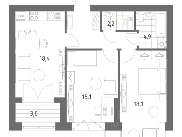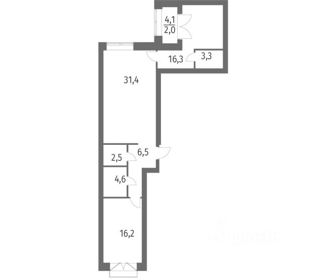 • ✅ Минимальная площадь: 20,4 м²