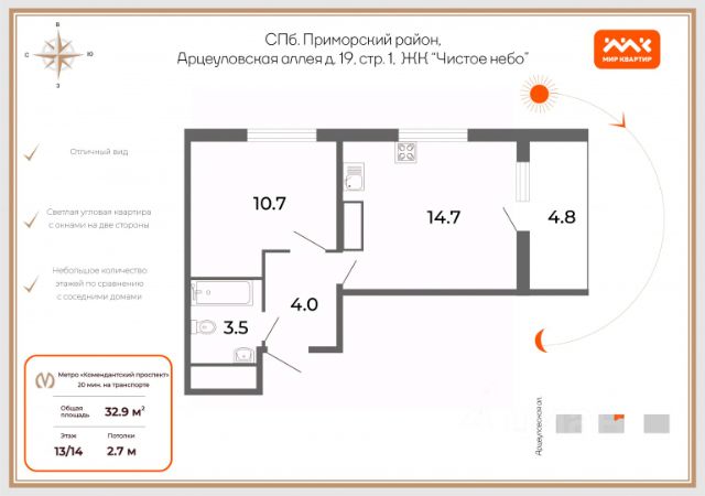 • ✓ В базе Циан 183 квартир на 13 этаже рядом с метро Старая Деревня