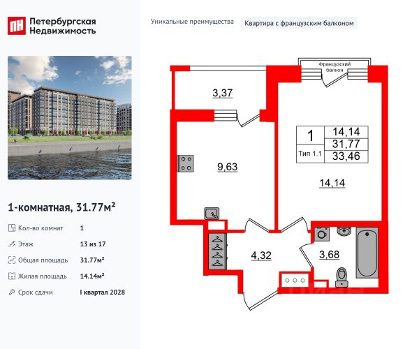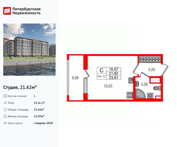Цена со скидкой до 30% в прямой продаже от застройщика — только в этом месяце. На апартаменты действует беспроцентная рассрочка. Роскошные виды на Неву. Апартамент-студия в комплексе класса бизнес-лайт Zoom на Неве на 13-м этаже. Общая площадь 23,36. Без отделки. Zoom на Неве расположен в новом месте силы рядом с центром города на первой линии Октябрьской набережной в Невском районе, всего в 7 км от исторической части Санкт-Петербурга. Большой выбор эргономичных и максимально продуманных планировок позволит каждому найти вариант по душе. Панорамные виды на Неву, благоустроенные дворы, детская игровая комната, подземный паркинг, коммерческие зоны на первом этаже, это и многое другое делает Zoom на Неве идеальным местом для жизни. Особенности: - Панорамные виды на Неву и город; - 10 мин. до Парка Строителей, 15 мин. до Лондон-молла, Ленты, Максидома, 15 мин. до метро "ул. Дыбенко", 12 мин. до КАД, 10 мин. до центра; - Единая архитектурная концепция. Сдержанные и монументальные фасады в неоклассическом стиле; - Парадный лобби для жильцов. Единый вход в комплекс с администратором, зоной ресепшн и охраной, зоной для бесконтактной доставки посылок и еды; - Подземный отапливаемый паркинг с доступом из парадной; - Доступно 3 варианта отделки на выбор: черновая, предчистовая (White Box) и чистовая; - Зоны отдыха для взрослых и детей, Wi-Fi-покрытие во дворе и в паркинге, зоны для питомцев, арт-объекты и много другое. В шаговой доступности вся необходимая инфраструктура от детских садов и школ до супермаркетов и салонов красоты; - Все происходящее контролируется видеокамерами, а покой внутренней территории и безопасность ваших детей гарантируется полным отсутствием транспорта во дворах в концепции "без машин".